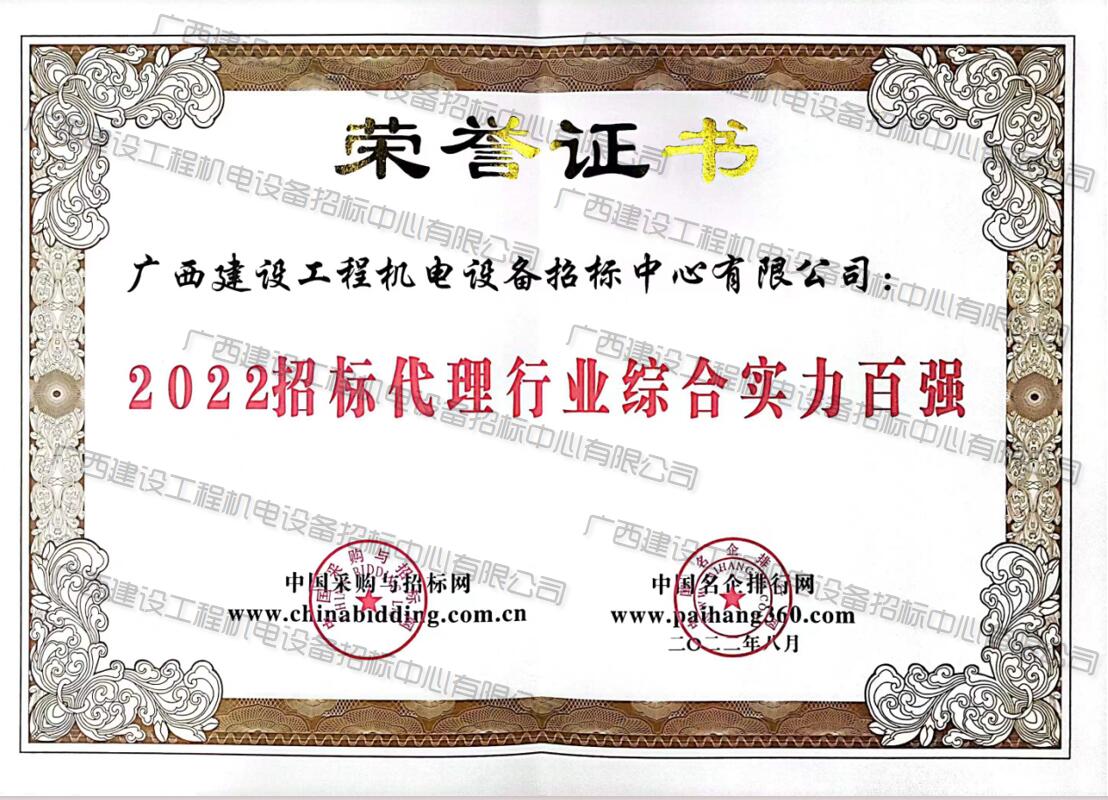 2022招標代理行業(yè)綜合實力百強