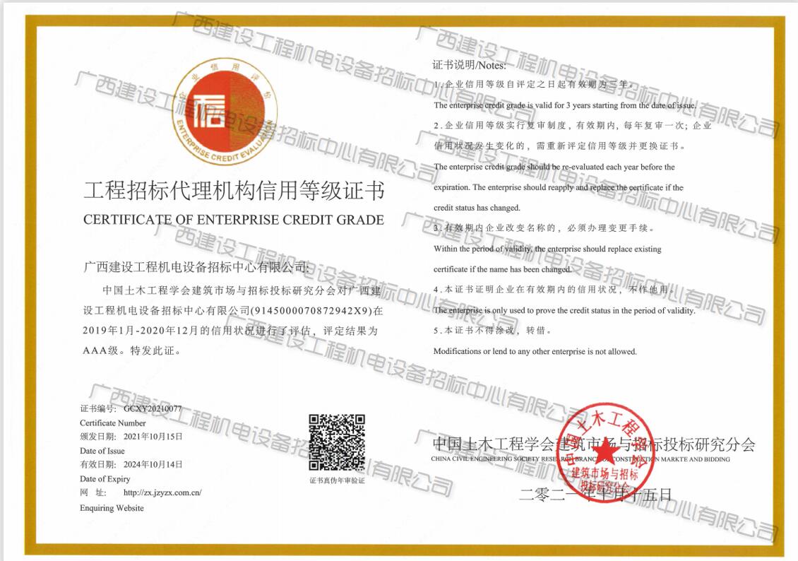 2019-2020年工程招標代理機構(gòu)信用等級AAA級