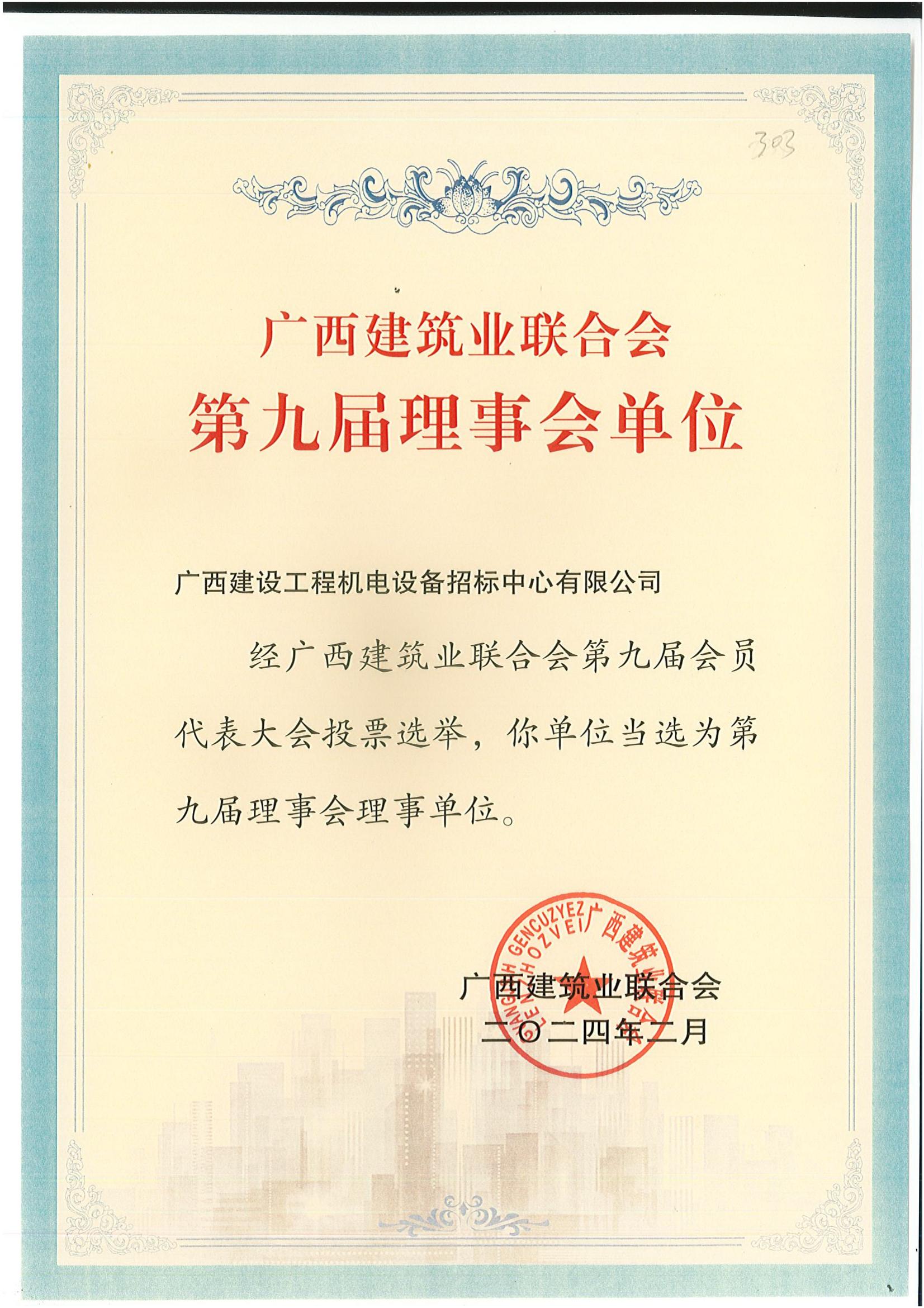 2024年廣西建筑業(yè)聯(lián)合會第九屆理事會單位證書